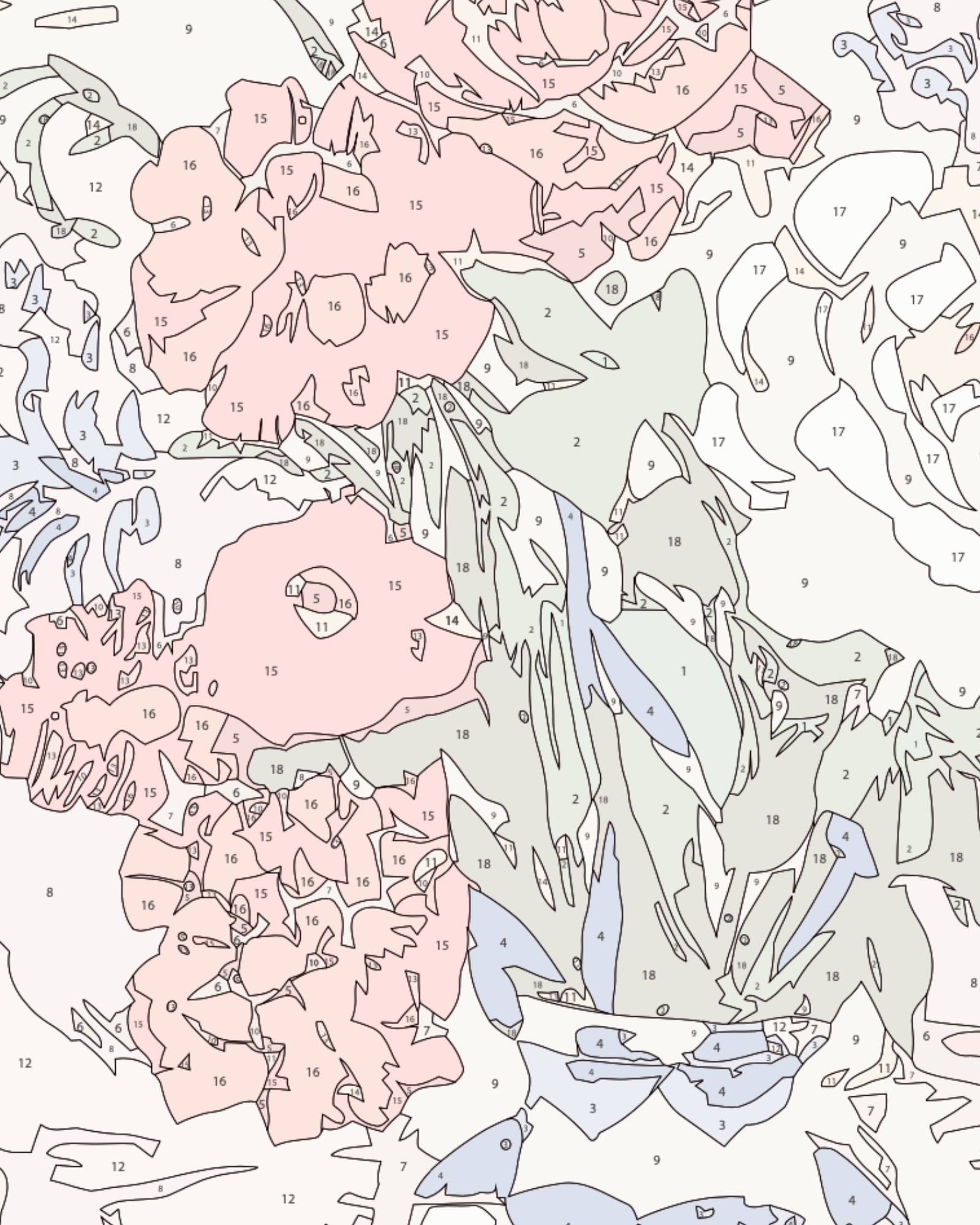 Paint by numbers is een schildertechniek waarbij een afbeelding is opgedeeld in genummerde vlakken. Elke kleur is toegewezen aan een specifiek nummer.