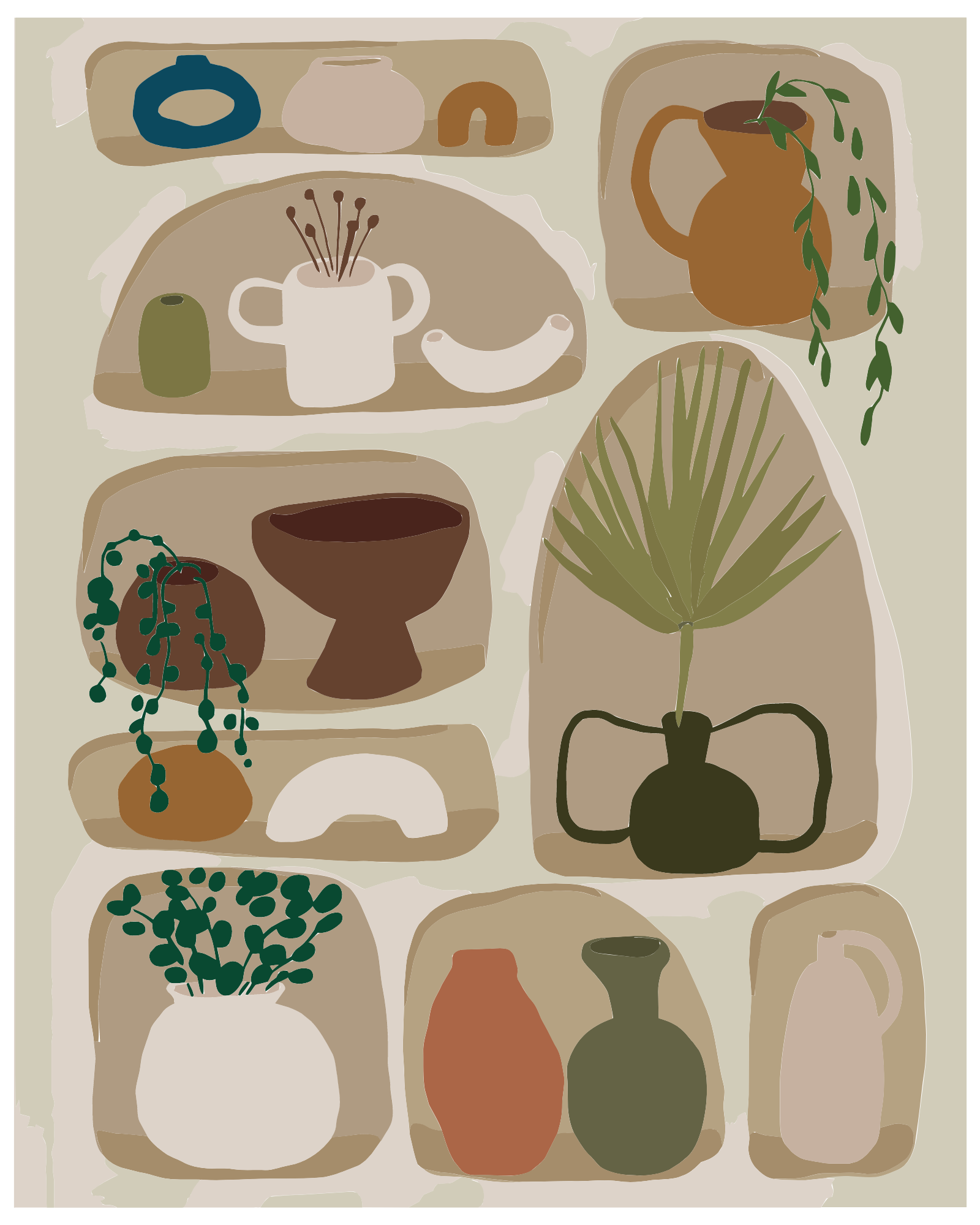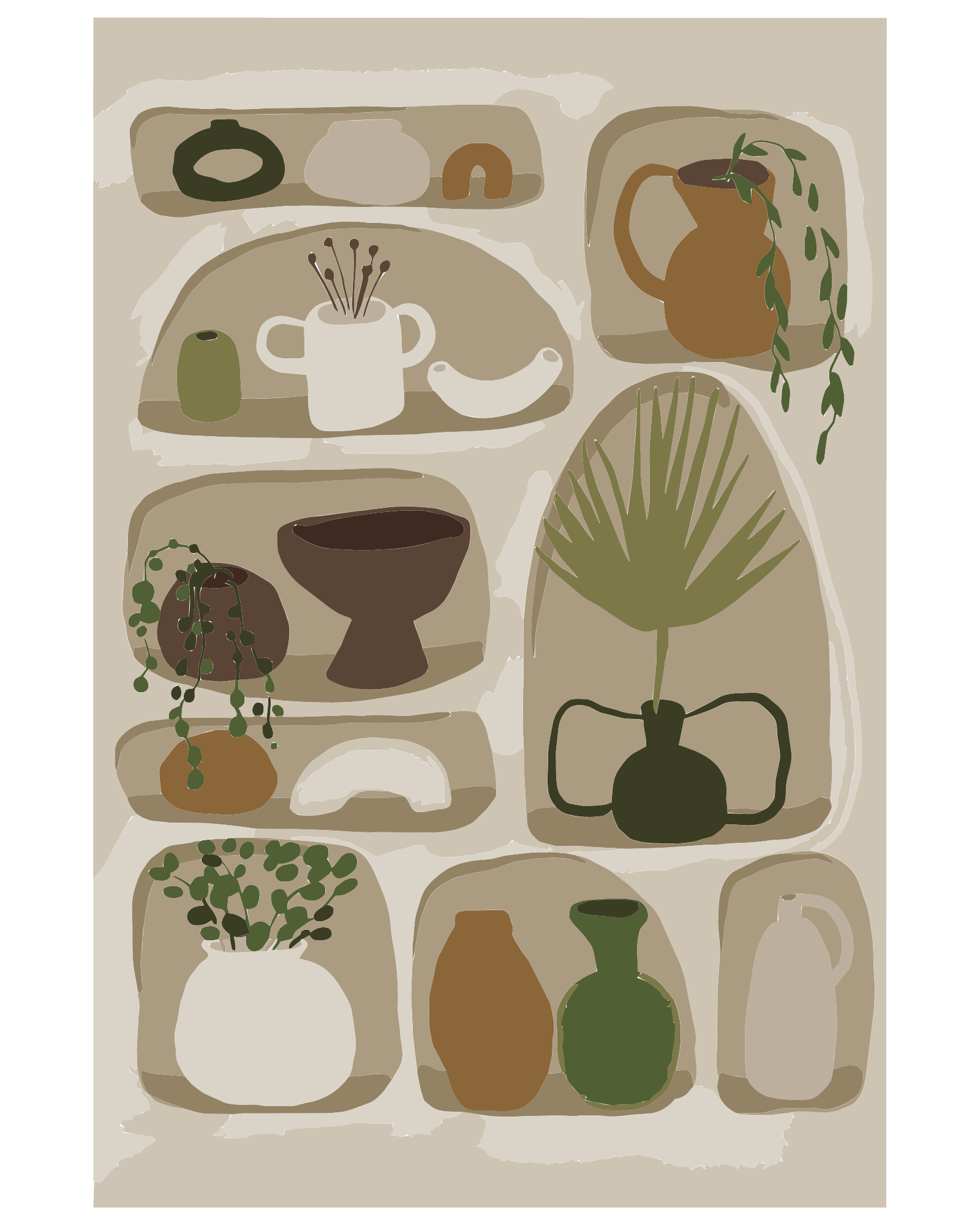 Aardewerk is hot. Met deze paint by number poster kan jij jouw eigen stijlvolle kunstwerk creëren. In een kastje vol met coole aardewerk potjes, zal deze poster een hoogtepunt zijn in je interieur. Met zijn natuurlijke aardse tinten past het perfect in veel soorten interieurs en zorgt voor een unieke toevoeging aan jouw wanddecor. Begin vandaag met schilderen!