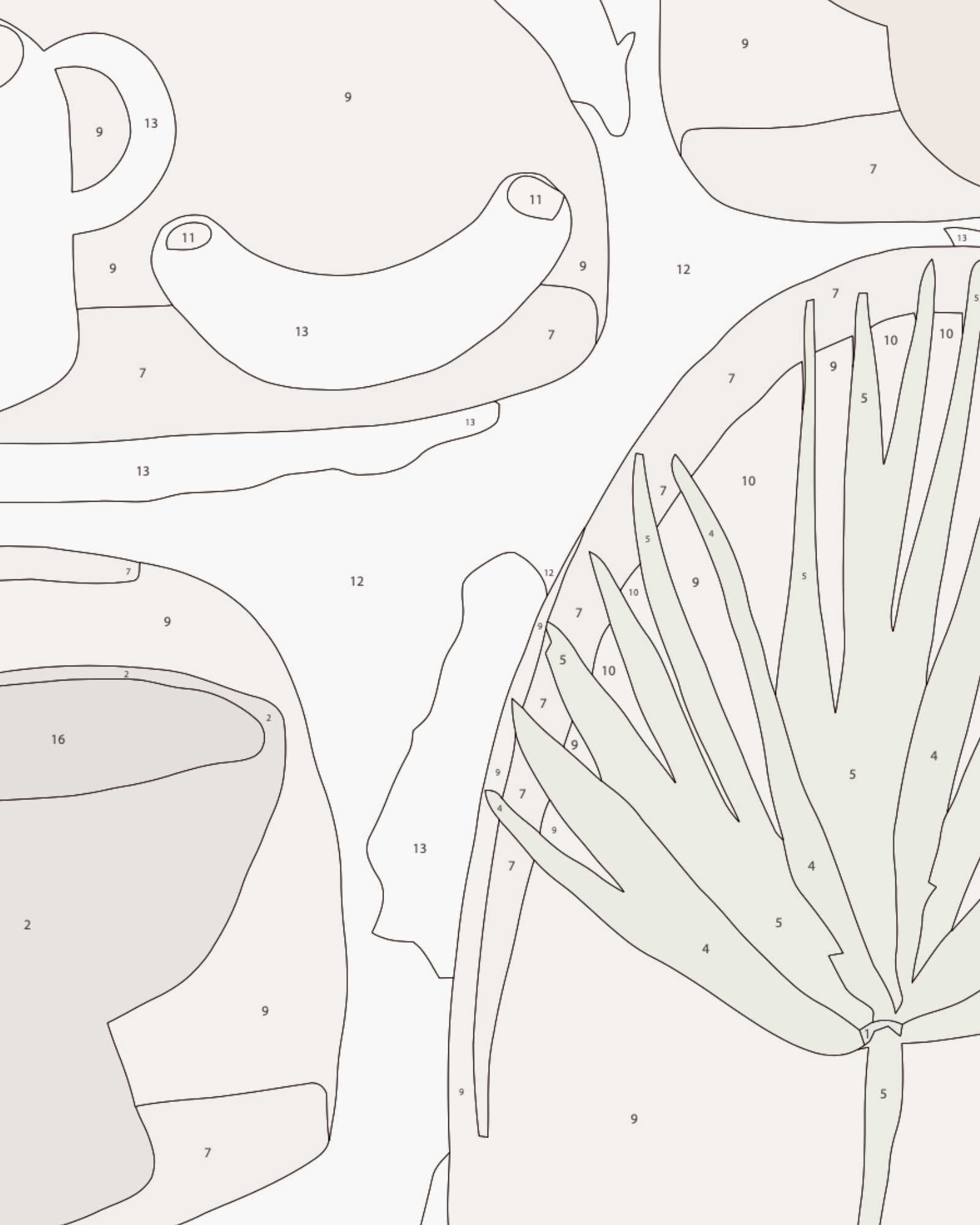 Volg de nummers op het canvas. Elk nummer komt overeen met een specifieke kleur. Schilder elk genummerd gebied met de overeenkomstige kleur verf.
