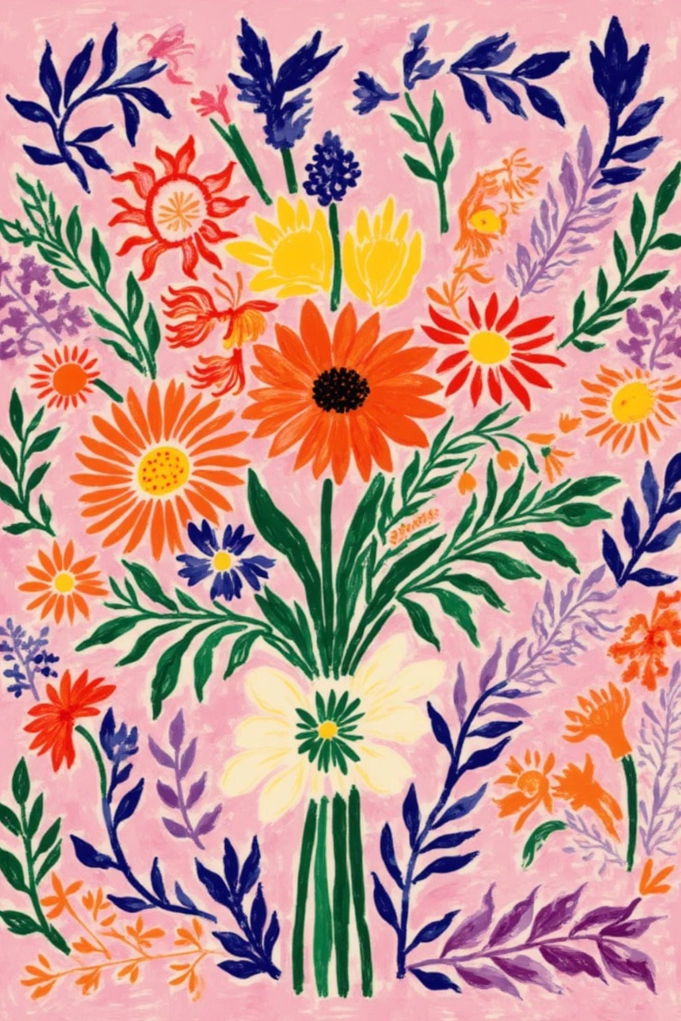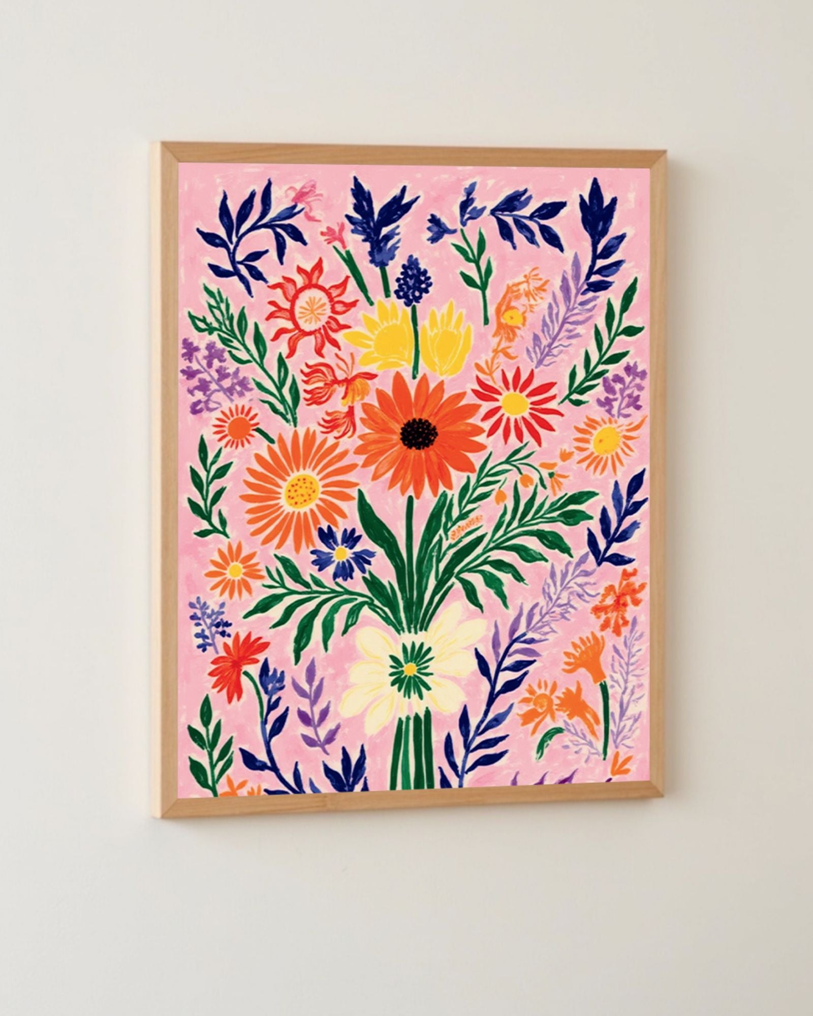 Droom weg bij dit kleurrijke bloemenboeket. Een ode aan kleur, geur en liefde – precies wat je verdient. De poster barst van de levendige roze tinten en vrolijke kleuren, alsof je een vers geplukt veldboeket in huis haalt. Romantisch, vrolijk en tijdloos.