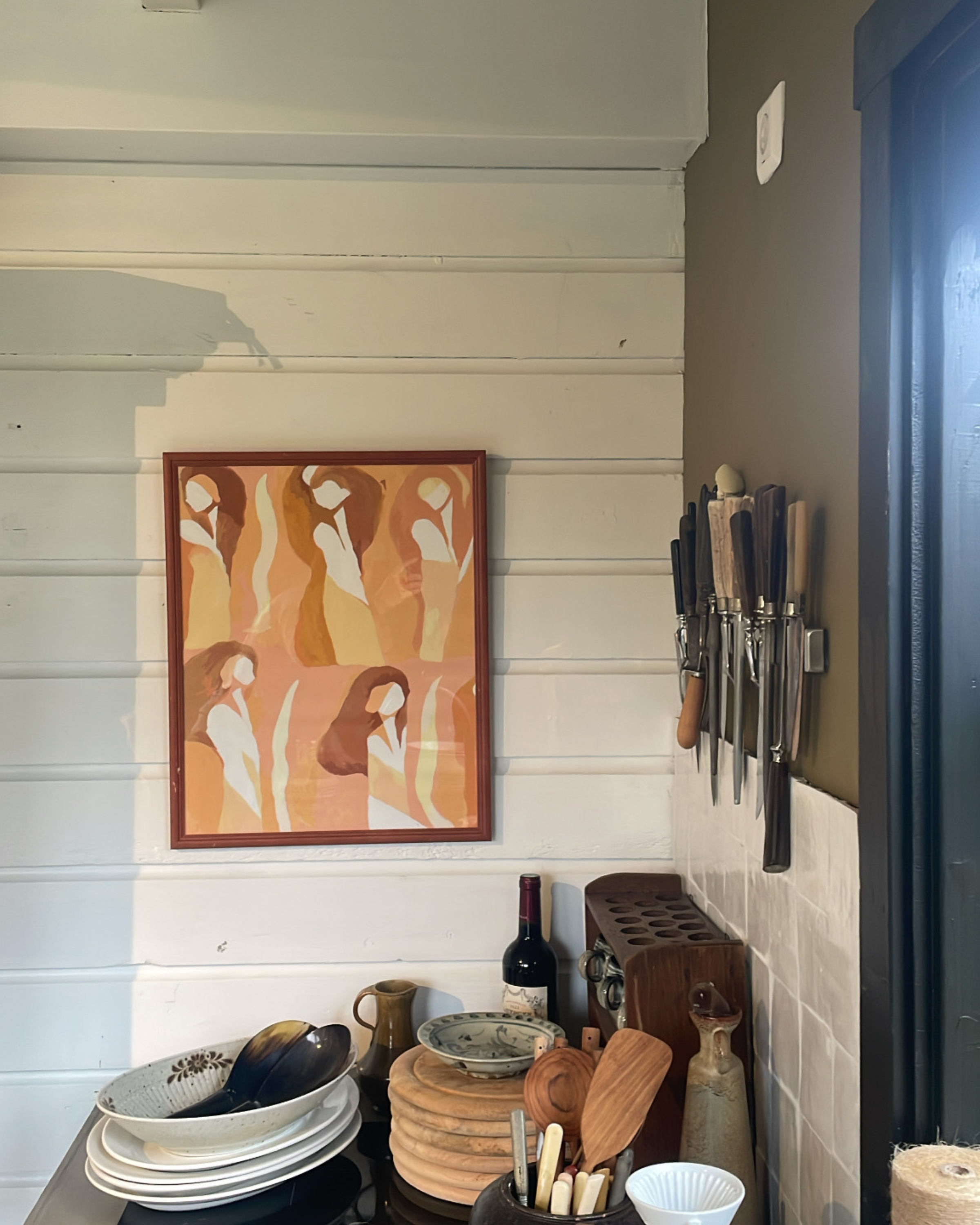 Let op: dit kunstwerk kan iets strakker uitkomen dan op dit voorbeeld. Om meer nuance toe te voegen kan je nadat de eerste laag gedroogd is op sommige plekken een lichtere kleur langs de randen aanbrengen en uitvegen/blenden met het bijgeleverde kwastje. Voor lichte verf adviseren we om een extra laagje aan te brengen voor dekking, indien nodig.