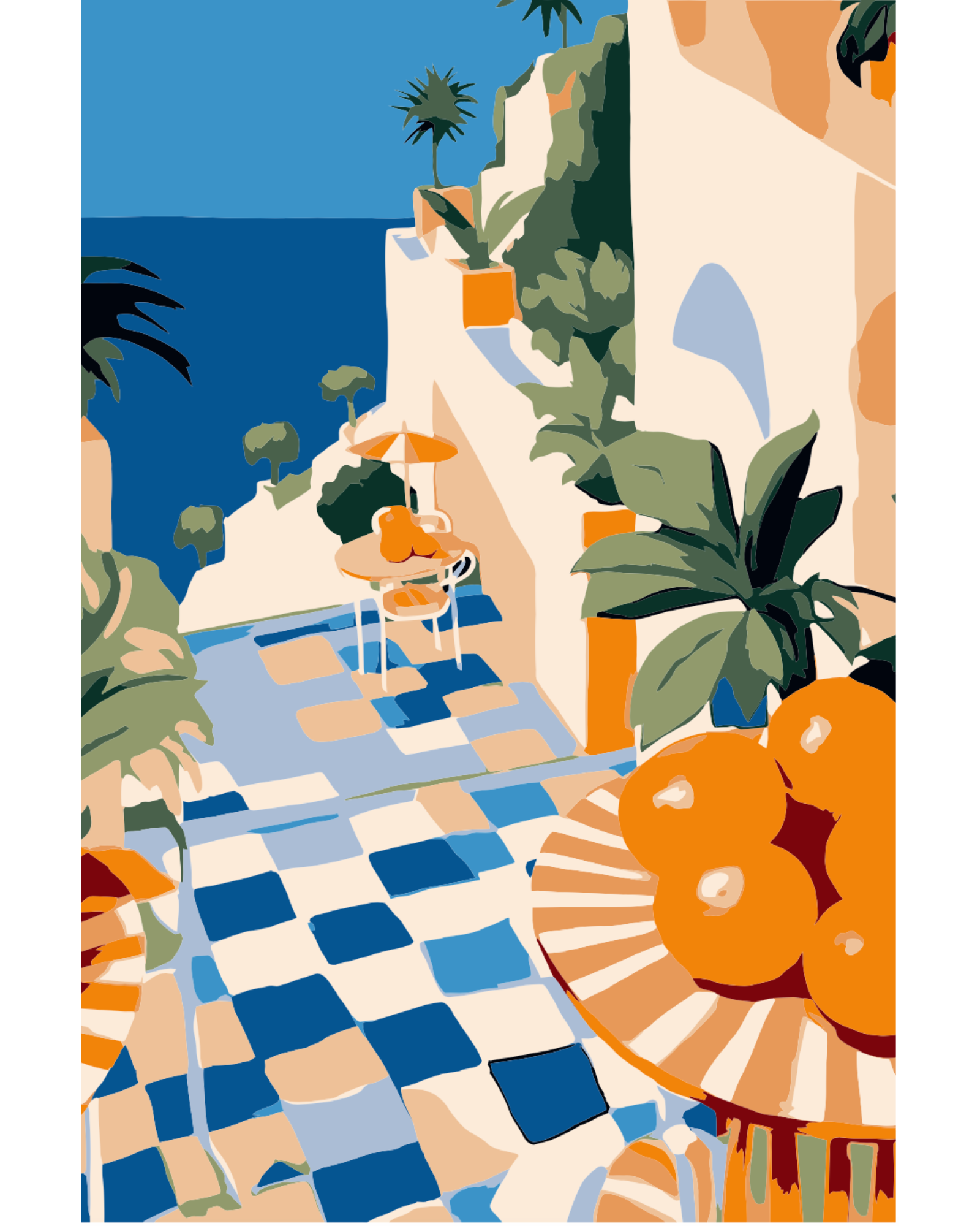 Breng de zon in huis met onze paint by numbers poster van een charmant dorpje aan zee, vol kleurrijke tegeltjes en een overvloed aan sinaasappels. Tijdens het schilderen geniet je van instant happy vibes. Hang het resultaat op en laat elke dag de positieve energie binnenkomen.