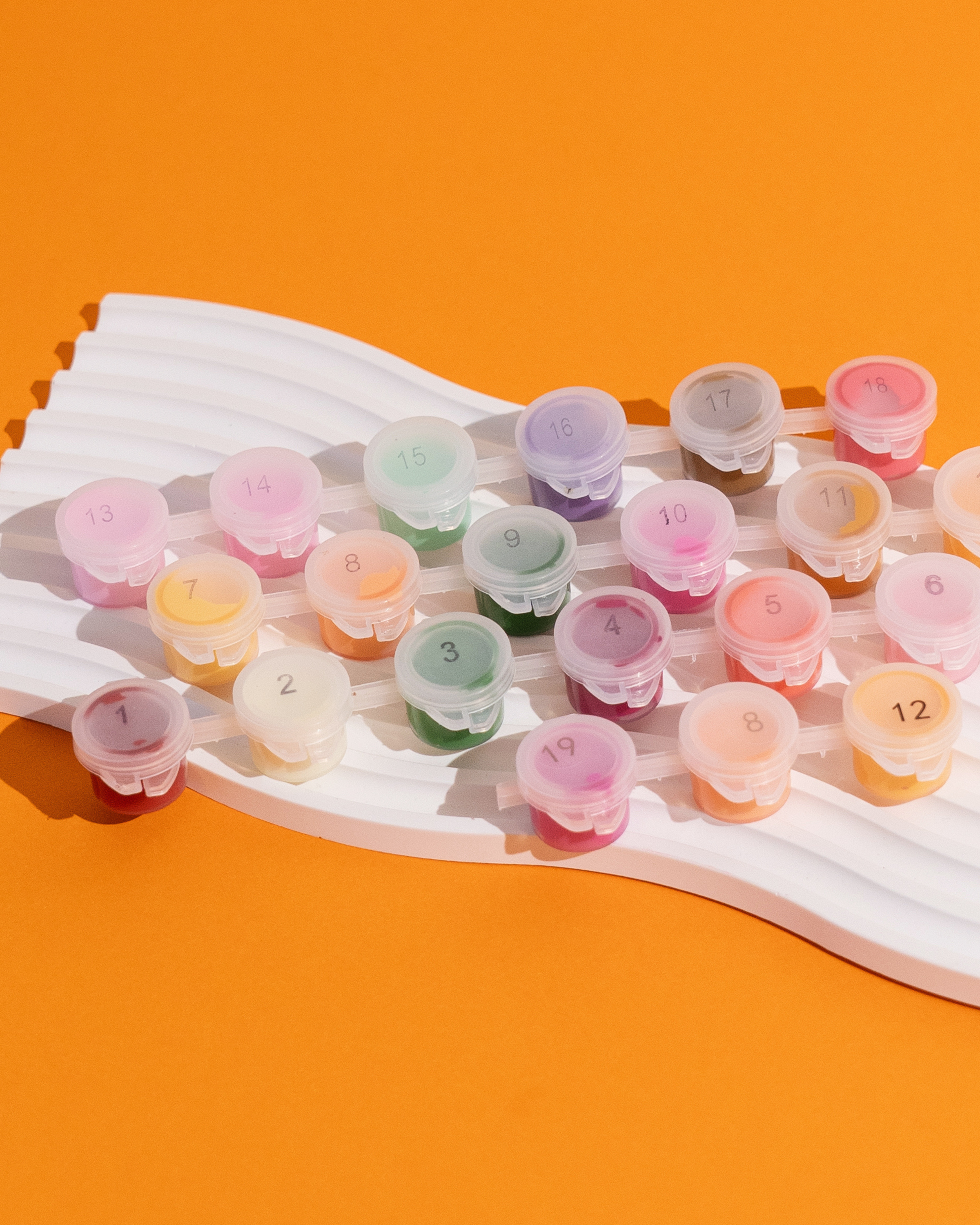 Volg de nummers op het canvas. Elk nummer komt overeen met een specifieke kleur. Schilder elk genummerd gebied met de overeenkomstige kleur verf.