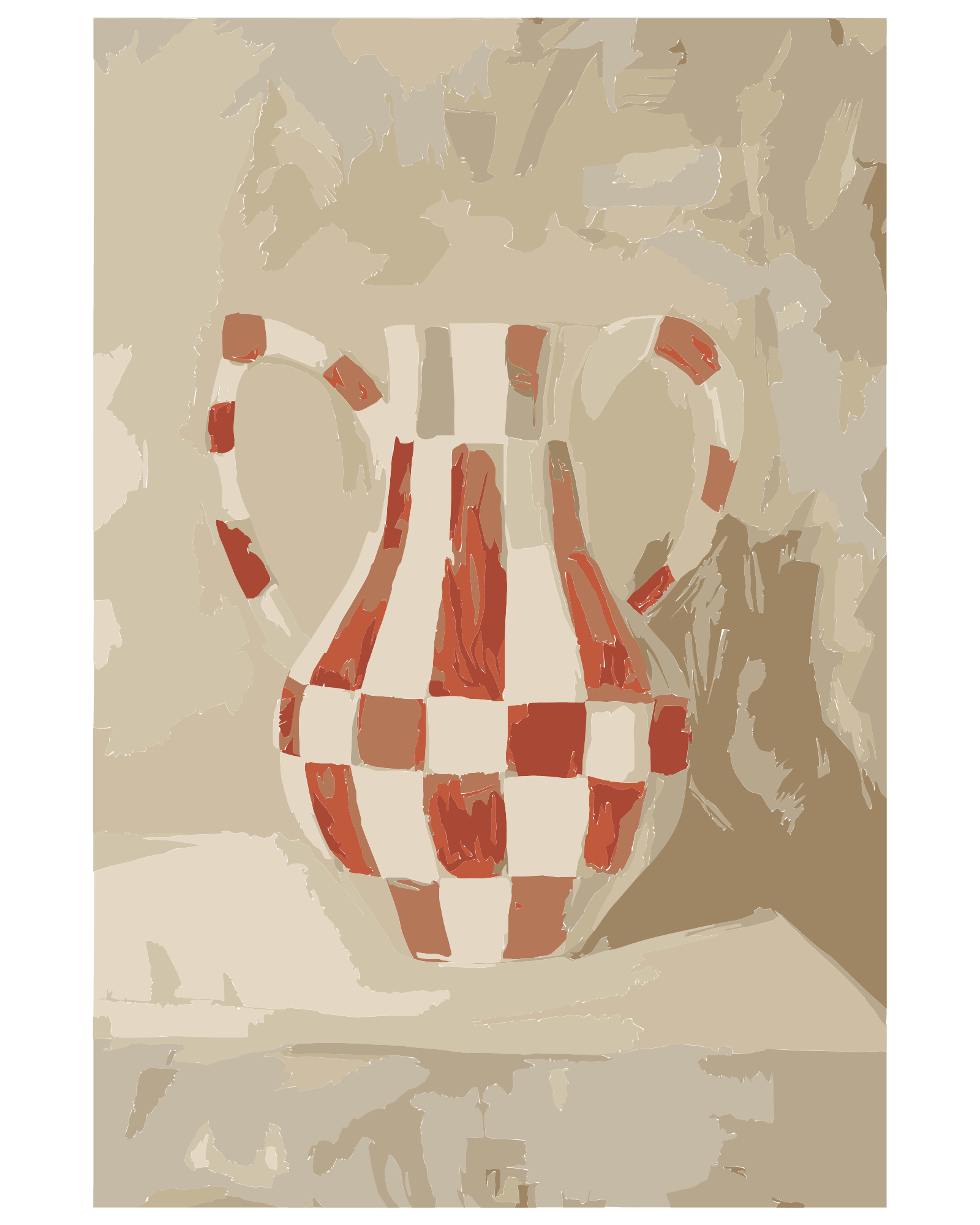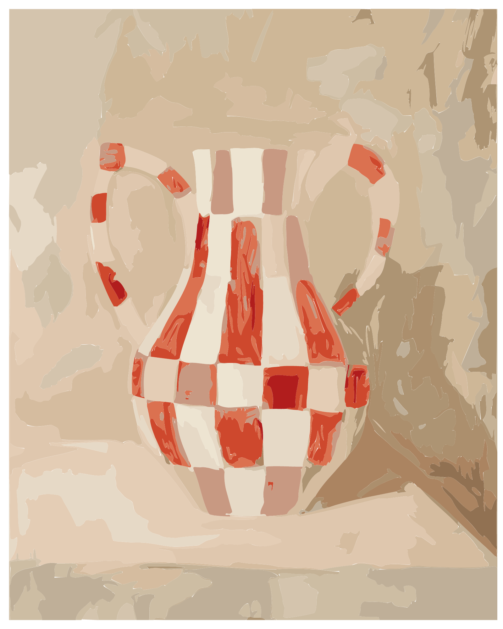 Beige en diep rood. Deze neutrale achtergrond met geblokte vaas is een echte favoriet. Leuk om te schilderen en om in jouw interieur te hangen. Pak je kwasten en kies voor deze creatieve, ontspannen activiteit.