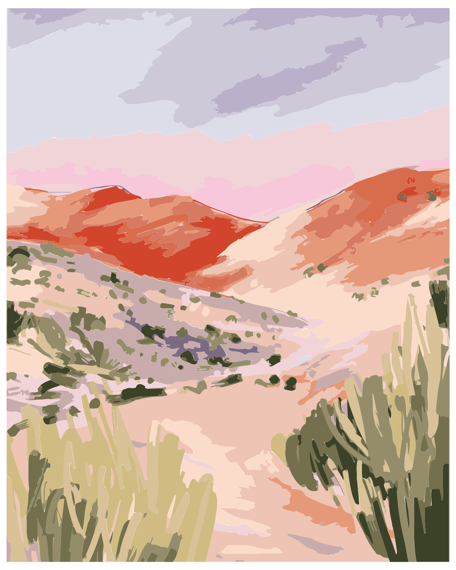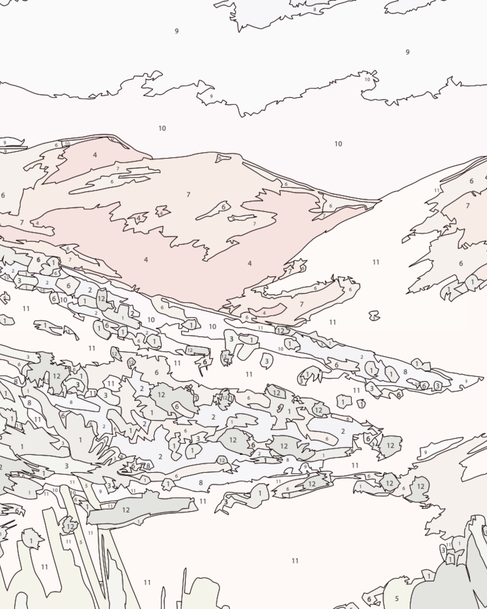 Dit heuvelachtige gebied met prachtige, zachte terracotta tinten. Dit paint by numbers project heeft veel details voor wie zin heeft in een leuke uitdaging.